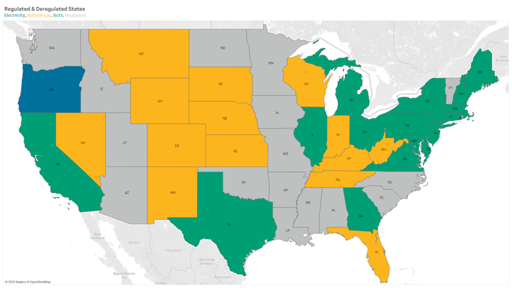 CES guides our clients operating in both regulated and deregulated markets to help them meet their energy goals. The map below shows U.S. markets that are deregulated for traditional electricity and natural gas commodities.